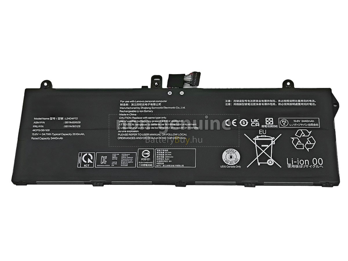 - 3 A Lenovo L24C4P72 akku 1:1 arányban lett tervezve, és mindenben megegyezik az eredeti akkumulátorral, így 100%-os kompatibilitást biztosít. Eredeti áramkör kialakítással, független védelmi áramkörrel, amely védelmet nyújt túltöltés, túlterhelés, túláram, magas hőmérséklet és rövidzárlat esetén.