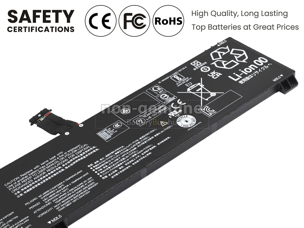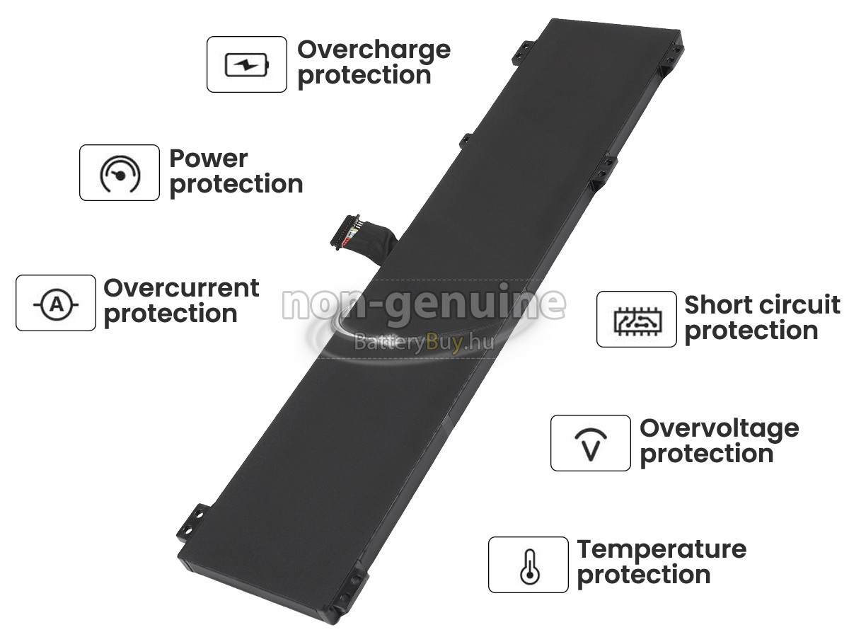 - 3 A Lenovo LEGION PRO 5 16IRX8-82WK008SCK akku 1:1 arányban lett tervezve, és mindenben megegyezik az eredeti akkumulátorral, így 100%-os kompatibilitást biztosít. Eredeti áramkör kialakítással, független védelmi áramkörrel, amely védelmet nyújt túltöltés, túlterhelés, túláram, magas hőmérséklet és rövidzárlat esetén.