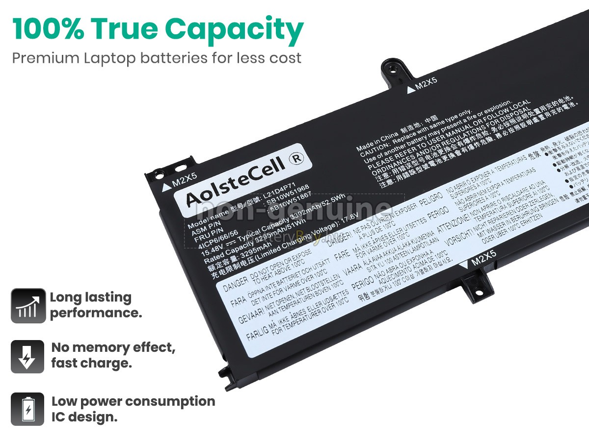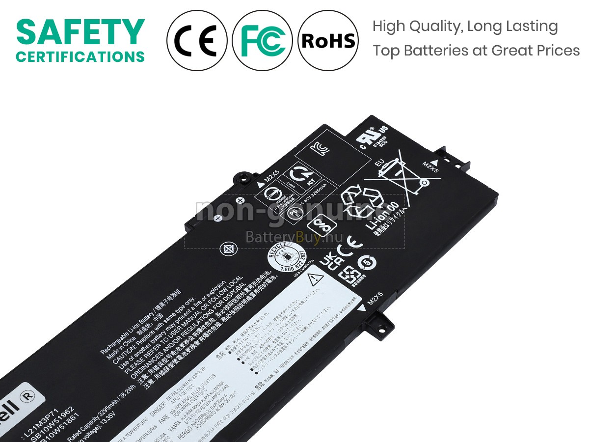 - 3 A Lenovo ThinkPad P14S GEN 3 (AMD)-21J50003ML akku 1:1 arányban lett tervezve, és mindenben megegyezik az eredeti akkumulátorral, így 100%-os kompatibilitást biztosít. Eredeti áramkör kialakítással, független védelmi áramkörrel, amely védelmet nyújt túltöltés, túlterhelés, túláram, magas hőmérséklet és rövidzárlat esetén.