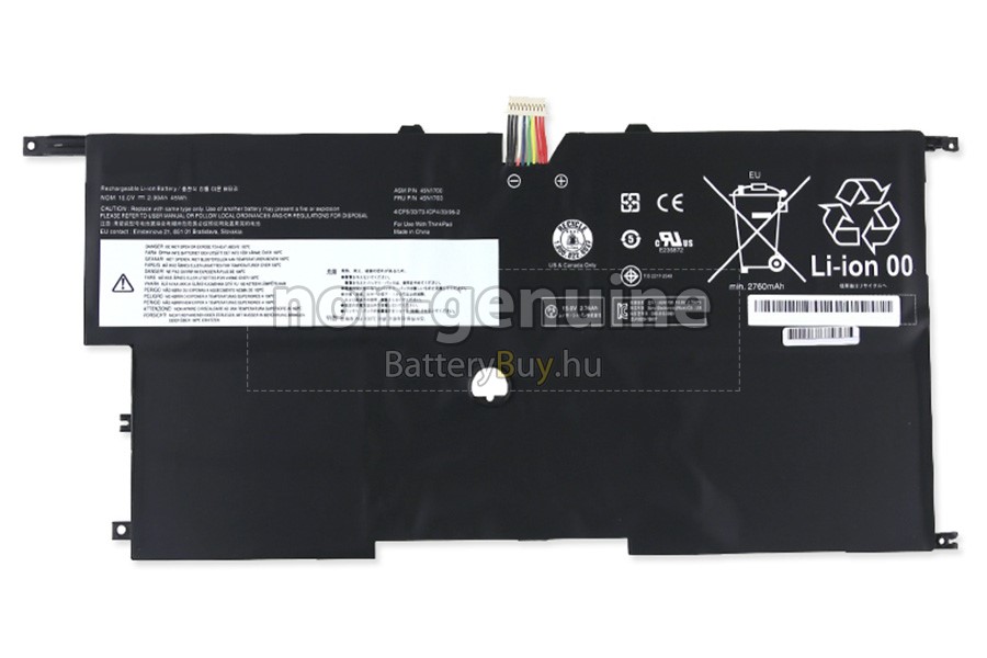- Az új laptop Lenovo ThinkPad X1 CARBON TOUCH 20A8-003UGE ULTRABOOK akkumulátor szerint 1: 1 arányosan tervezik, és mindenben megegyezik az eredetivel, 100%-os kompatibilis. Eredeti áramkör tervezése, független védelmi áramkör, túltöltés, túlterhelés, túláram, magas hőmérséklet és rövidzárlat védelme.