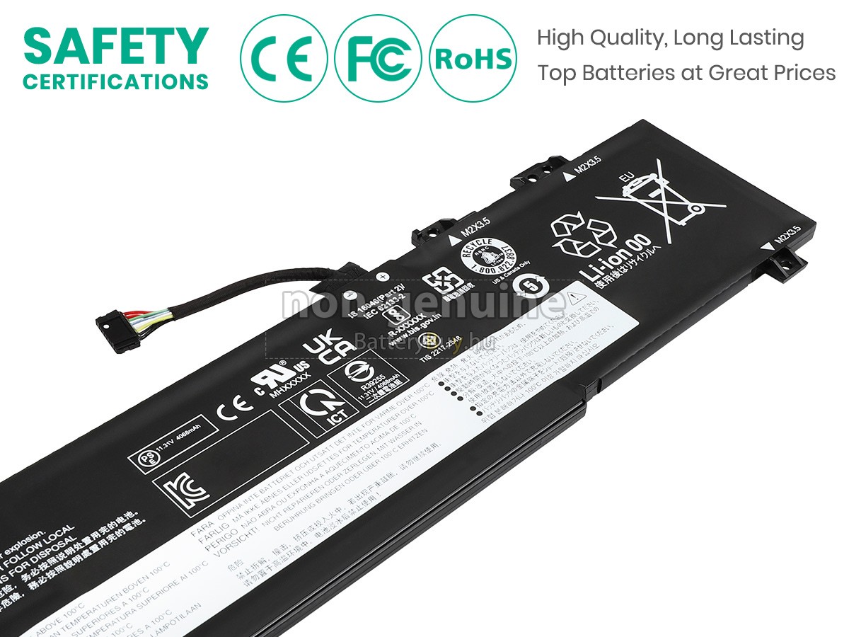 - 3 A Lenovo V14 G4 AMN-82YT00S1FR akku 1:1 arányban lett tervezve, és mindenben megegyezik az eredeti akkumulátorral, így 100%-os kompatibilitást biztosít. Eredeti áramkör kialakítással, független védelmi áramkörrel, amely védelmet nyújt túltöltés, túlterhelés, túláram, magas hőmérséklet és rövidzárlat esetén.