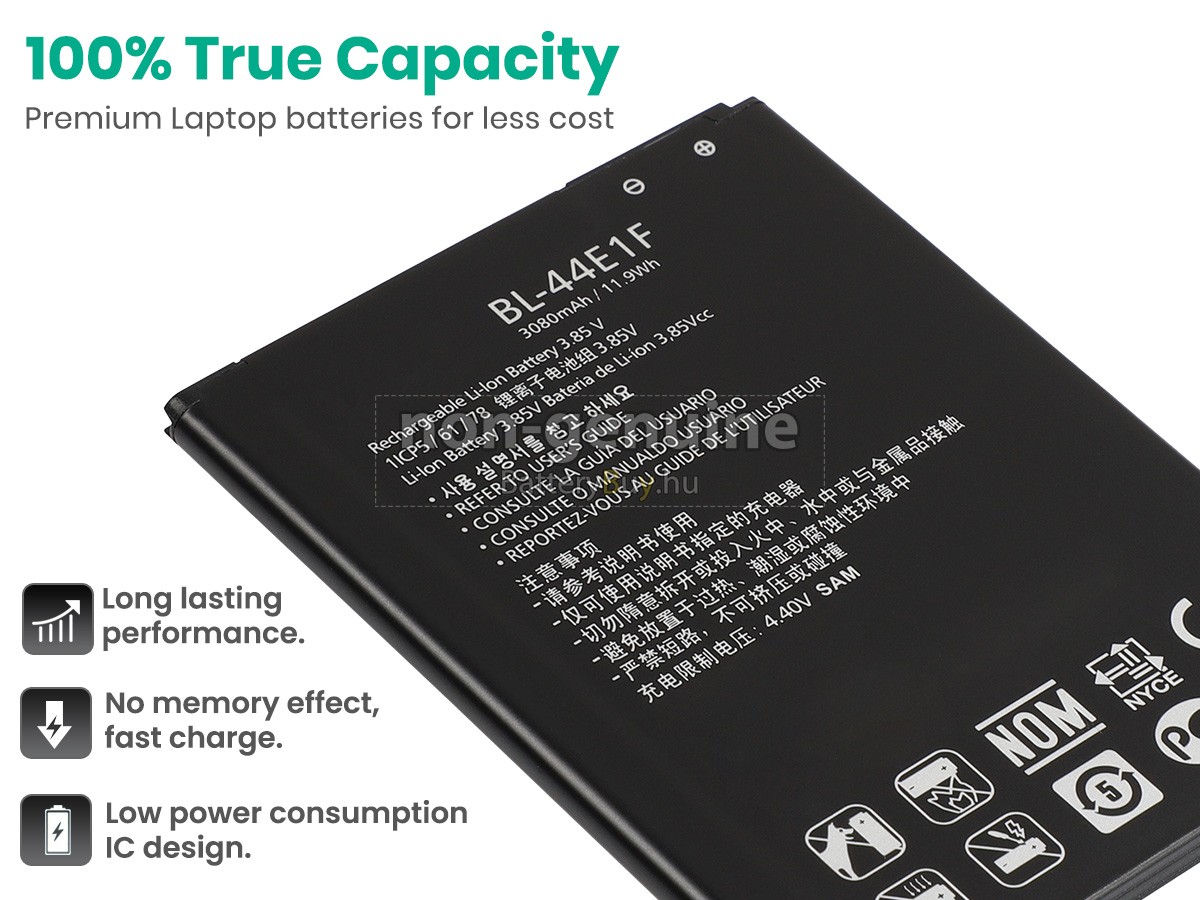 - 1 Mindegyik LG US996 akku a kiváló minőségű, teljesen új lítium-ion akku készül, amelyeket a gyártó közvetlenül biztosítja. Alacsonyabb ár, de hosszabb élettartam.