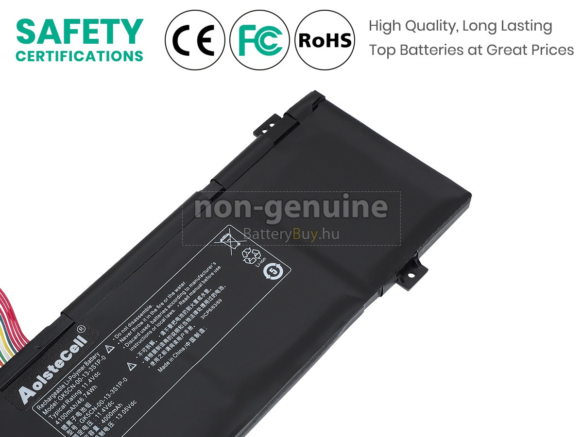- Az Mechrevo GK5CN-03-17-3S1P-0 akkumulátor szerint 1: 1 arányosan tervezik, és mindenben megegyezik az eredetivel, 100%-os kompatibilis. Eredeti áramkör tervezése, független védelmi áramkör, túltöltés, túlterhelés, túláram, magas hőmérséklet és rövidzárlat védelme.