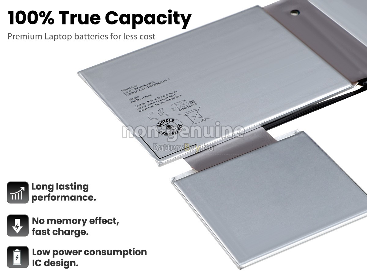 - Az Microsoft Surface LAPTOP A70 akkumulátor szerint 1: 1 arányosan tervezik, és mindenben megegyezik az eredetivel, 100%-os kompatibilis. Eredeti áramkör tervezése, független védelmi áramkör, túltöltés, túlterhelés, túláram, magas hőmérséklet és rövidzárlat védelme.