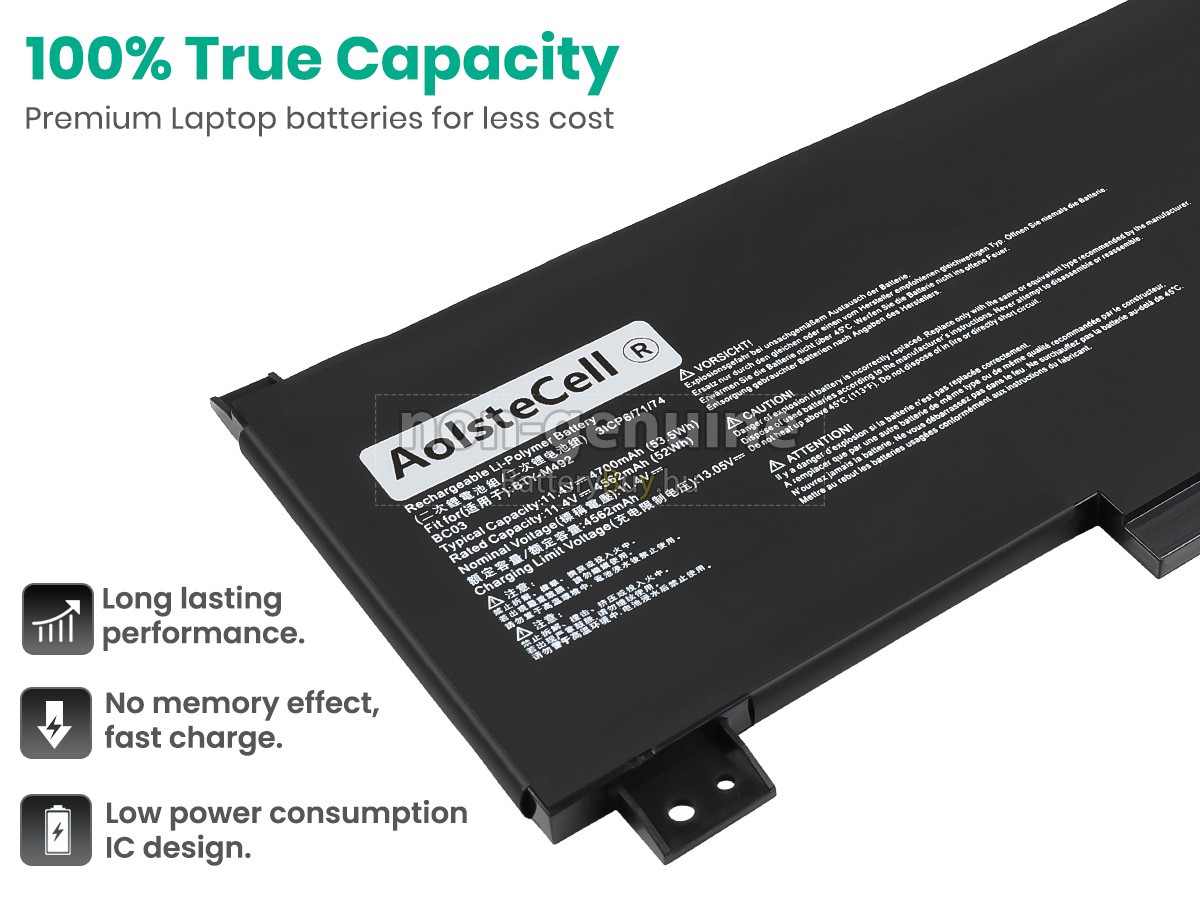 - 3 A MSI STEALTH 15 A13VF akku 1:1 arányban lett tervezve, és mindenben megegyezik az eredeti akkumulátorral, így 100%-os kompatibilitást biztosít. Eredeti áramkör kialakítással, független védelmi áramkörrel, amely védelmet nyújt túltöltés, túlterhelés, túláram, magas hőmérséklet és rövidzárlat esetén.