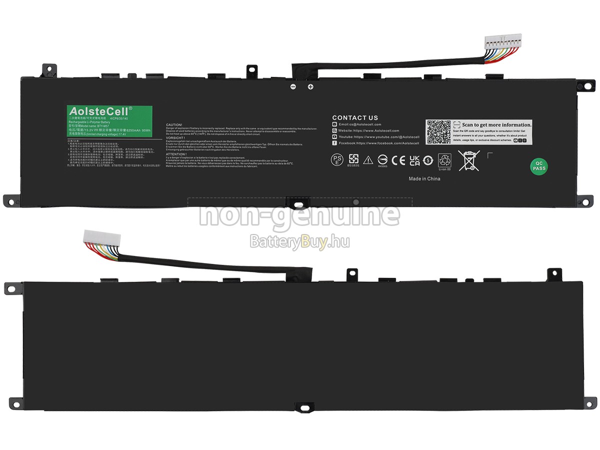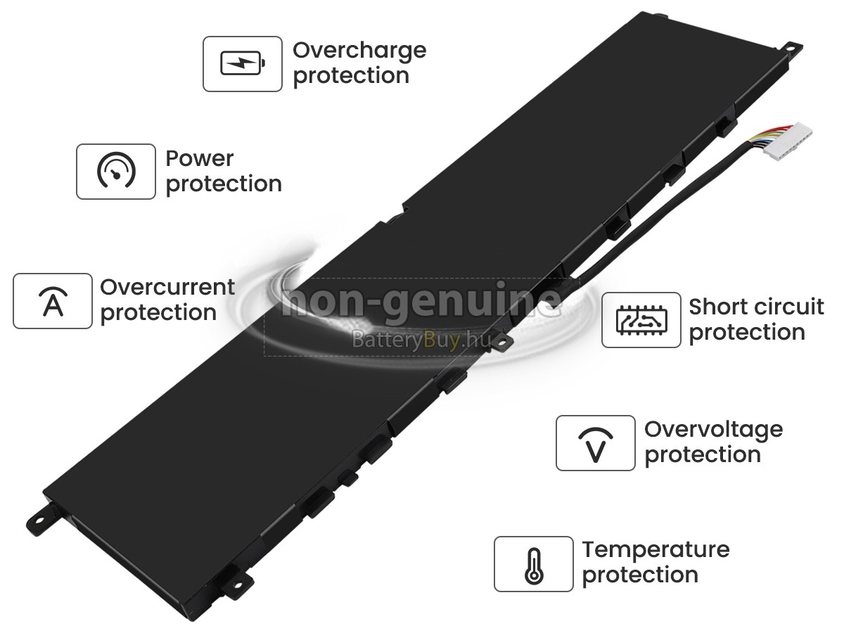 - 3 A MSI VECTOR GP66 12UGSO-803FR akku 1:1 arányban lett tervezve, és mindenben megegyezik az eredeti akkumulátorral, így 100%-os kompatibilitást biztosít. Eredeti áramkör kialakítással, független védelmi áramkörrel, amely védelmet nyújt túltöltés, túlterhelés, túláram, magas hőmérséklet és rövidzárlat esetén.