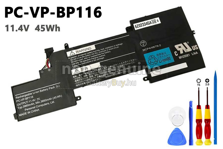 - Az NEC PC-VP-BP116 akkumulátor szerint 1: 1 arányosan tervezik, és mindenben megegyezik az eredetivel, 100%-os kompatibilis. Eredeti áramkör tervezése, független védelmi áramkör, túltöltés, túlterhelés, túláram, magas hőmérséklet és rövidzárlat védelme.