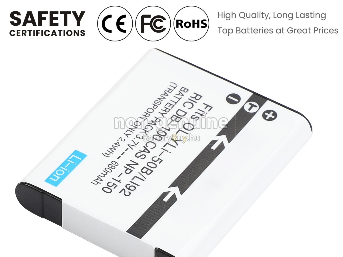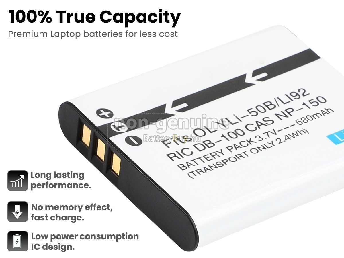 - Az Olympus LI-50B akku szerint 1 : 1 arányosan tervezik, és mindenben megegyezik az eredetivel, 100%-os kompatibilis. Eredeti áramkör tervezése, független védelmi áramkör, túltöltés, túlterhelés, túláram, magas hőmérséklet és rövidzárlat védelme.
