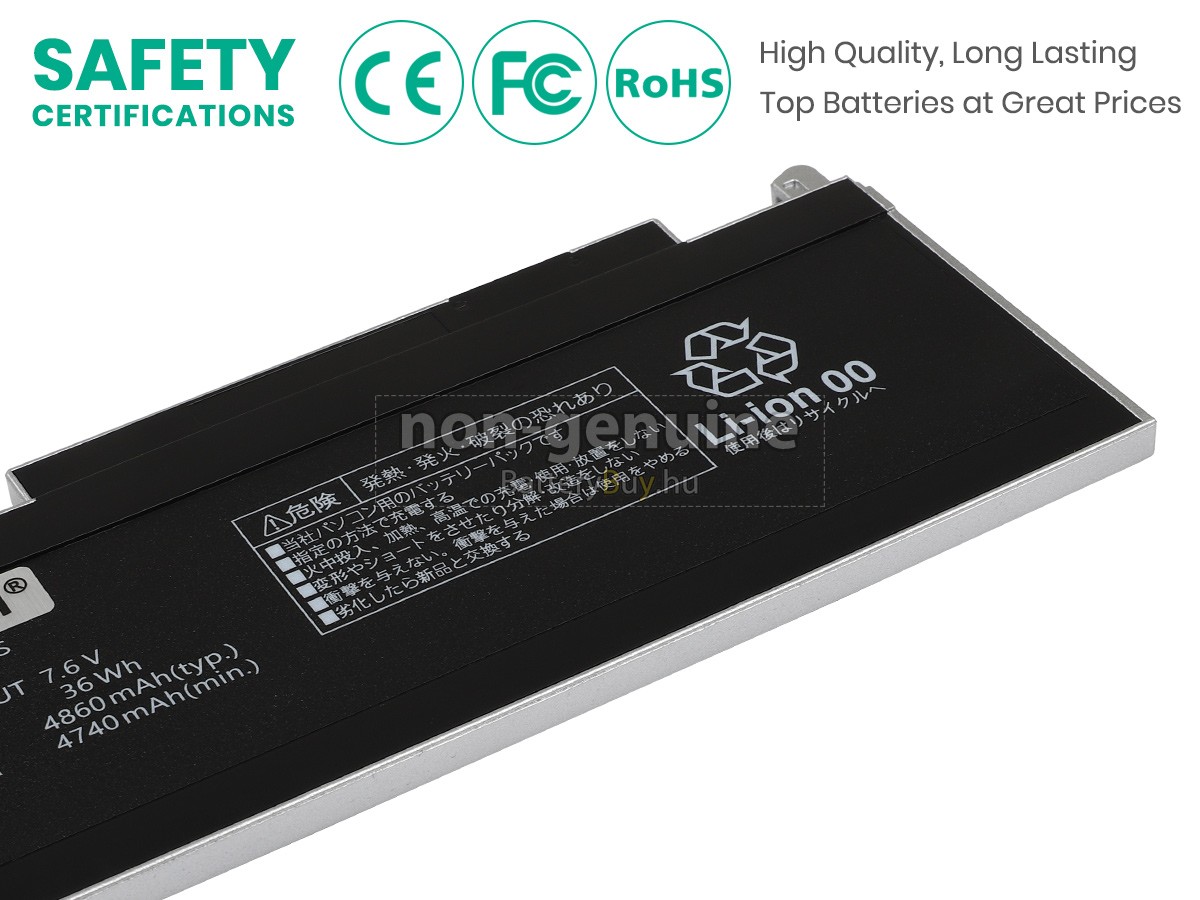 - 3 A Panasonic CF-VZSU0EJS akku 1:1 arányban lett tervezve, és mindenben megegyezik az eredeti akkumulátorral, így 100%-os kompatibilitást biztosít. Eredeti áramkör kialakítással, független védelmi áramkörrel, amely védelmet nyújt túltöltés, túlterhelés, túláram, magas hőmérséklet és rövidzárlat esetén.