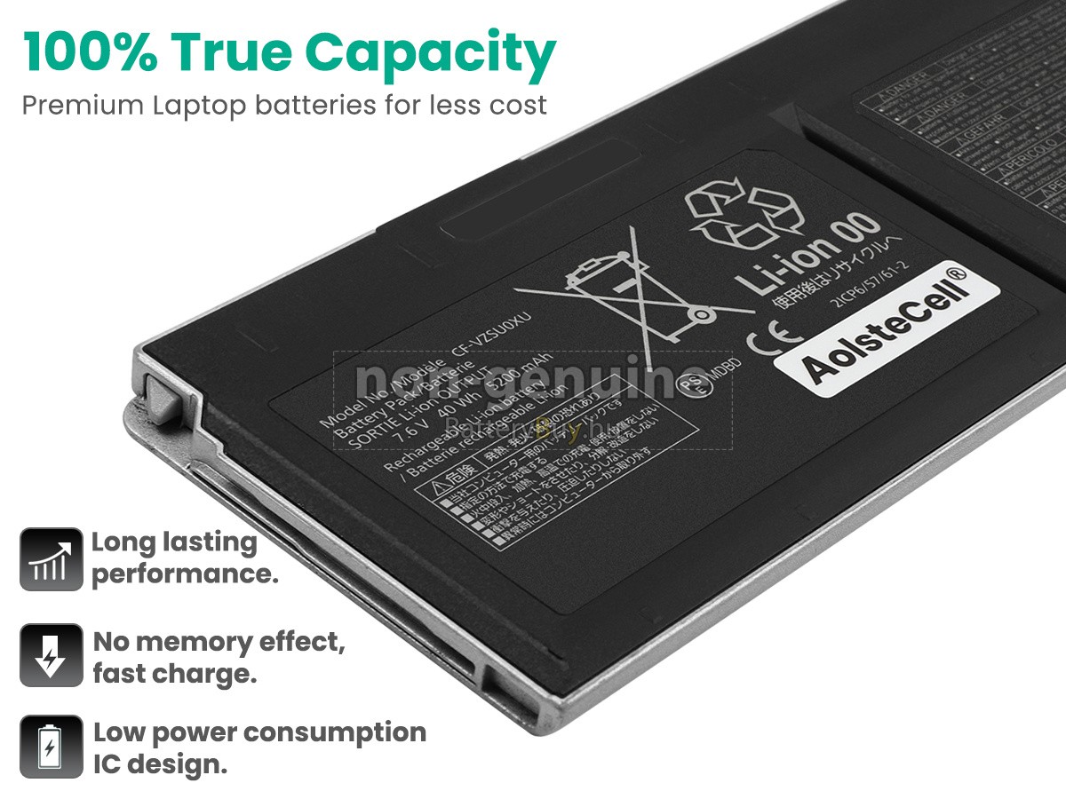 - 1 Mindegyik Panasonic CF-XZ6R akkumulátor kiváló minőségű, teljesen új lítium-ion cellákból készült, amelyeket közvetlenül a gyártó biztosít. Alacsonyabb ár, de hosszabb élettartam.