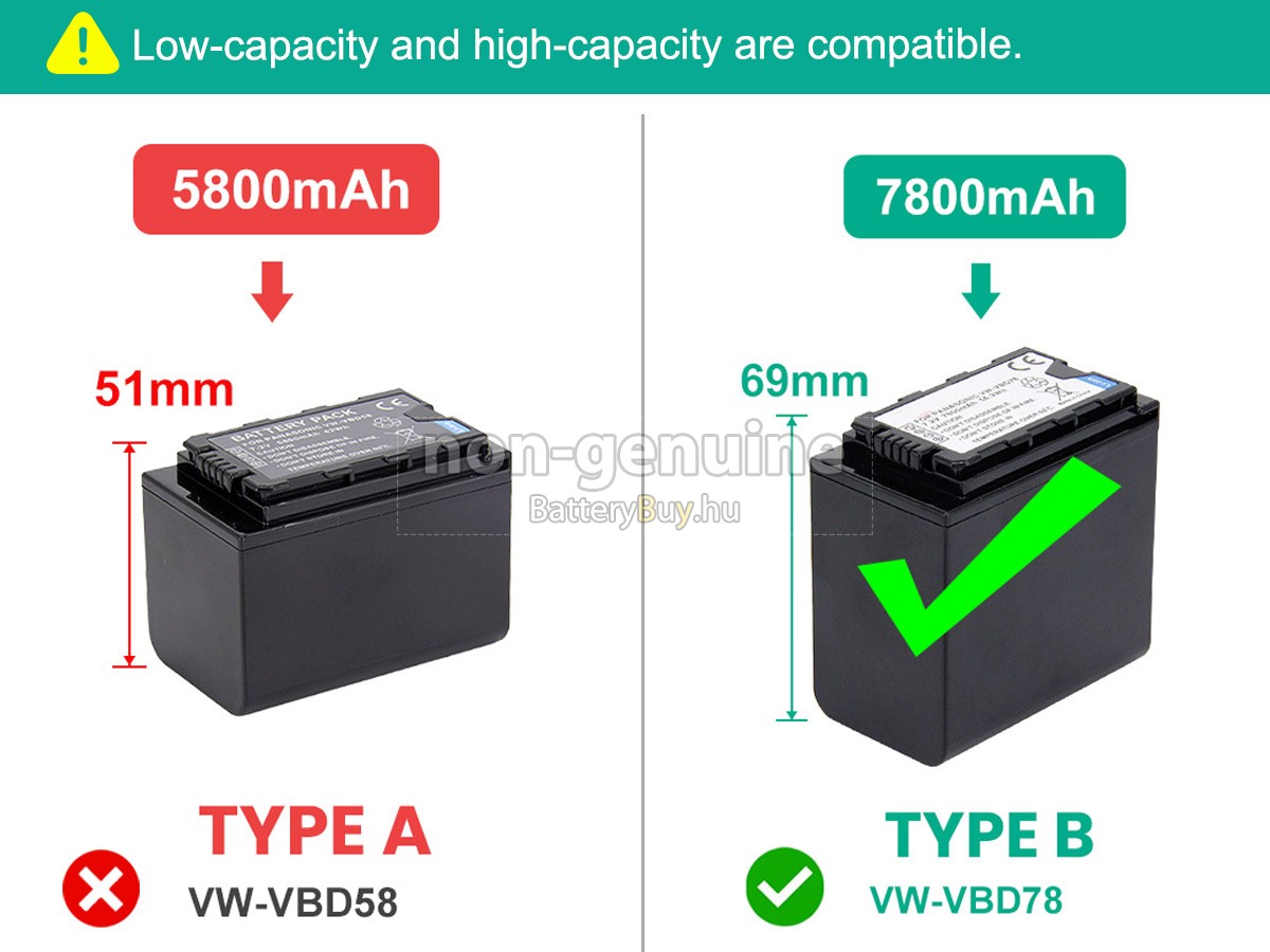 - 3 Az Panasonic HC-X1500 akku szerint 1 : 1 arányosan tervezik, és mindenben megegyezik az eredetivel, 100%-os kompatibilis. Eredeti áramkör tervezése, független védelmi áramkör, túltöltés, túlterhelés, túláram, magas hőmérséklet és rövidzárlat védelme.