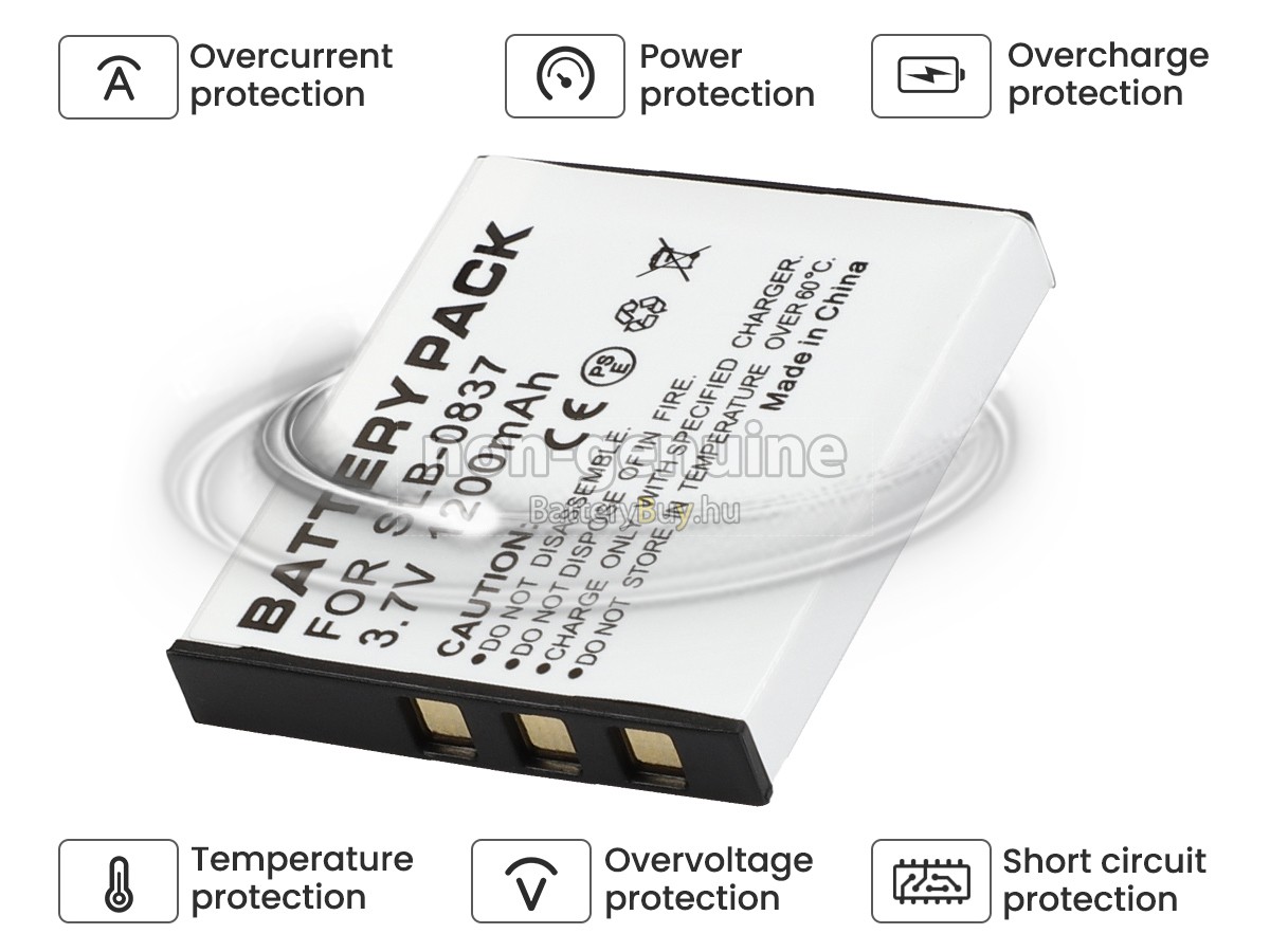 - 3 Az Samsung SLB-0837 akku szerint 1 : 1 arányosan tervezik, és mindenben megegyezik az eredetivel, 100%-os kompatibilis. Eredeti áramkör tervezése, független védelmi áramkör, túltöltés, túlterhelés, túláram, magas hőmérséklet és rövidzárlat védelme.