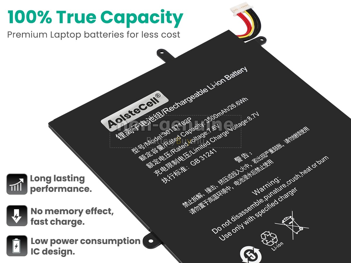 - 3 A Teclast 2666144 akku 1:1 arányban lett tervezve, és mindenben megegyezik az eredeti akkumulátorral, így 100%-os kompatibilitást biztosít. Eredeti áramkör kialakítással, független védelmi áramkörrel, amely védelmet nyújt túltöltés, túlterhelés, túláram, magas hőmérséklet és rövidzárlat esetén.