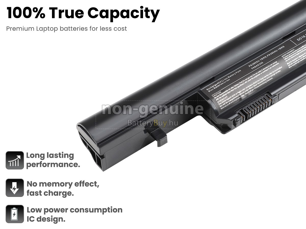 - Az Toshiba PA3904U-1BRS akkumulátor szerint 1: 1 arányosan tervezik, és mindenben megegyezik az eredetivel, 100%-os kompatibilis. Eredeti áramkör tervezése, független védelmi áramkör, túltöltés, túlterhelés, túláram, magas hőmérséklet és rövidzárlat védelme.