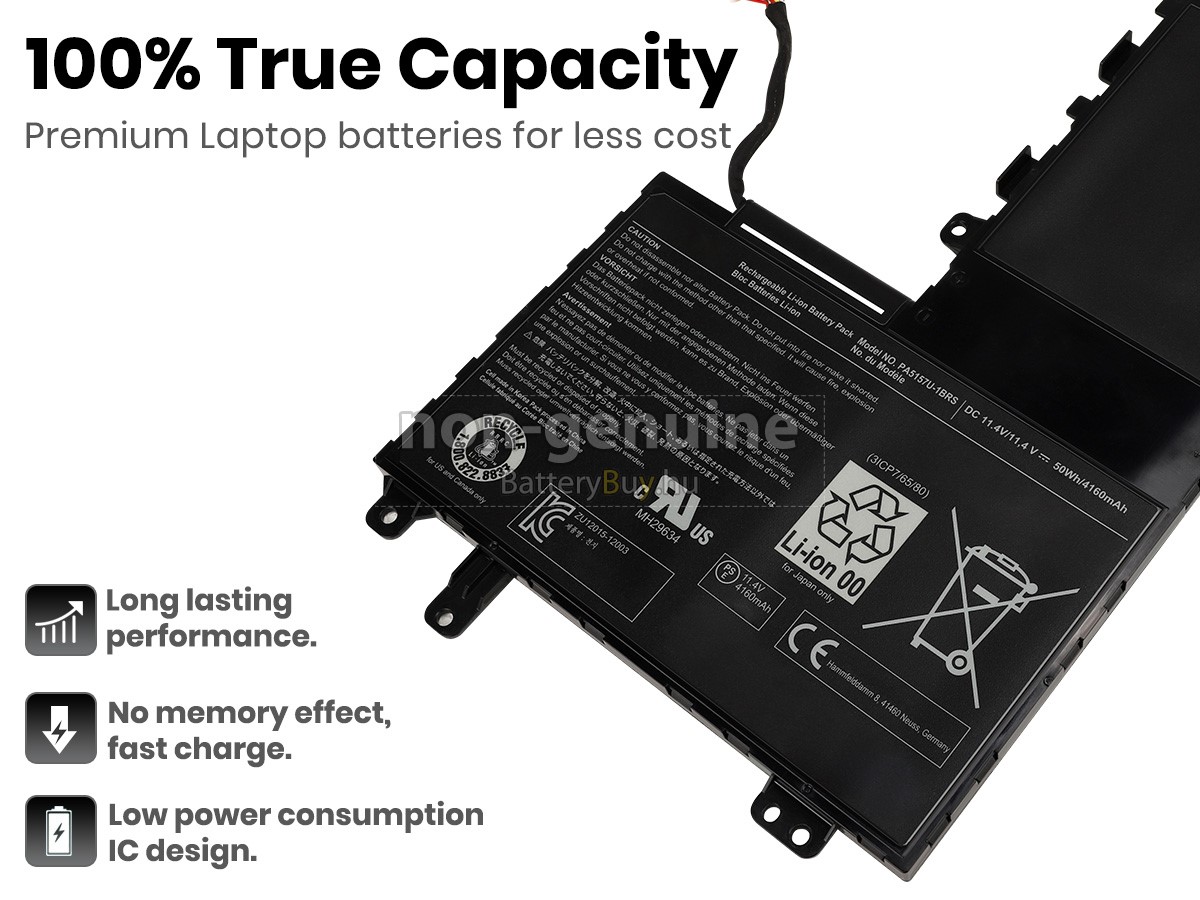 - Az Toshiba Satellite U50T-A-014 akkumulátor szerint 1: 1 arányosan tervezik, és mindenben megegyezik az eredetivel, 100%-os kompatibilis. Eredeti áramkör tervezése, független védelmi áramkör, túltöltés, túlterhelés, túláram, magas hőmérséklet és rövidzárlat védelme.