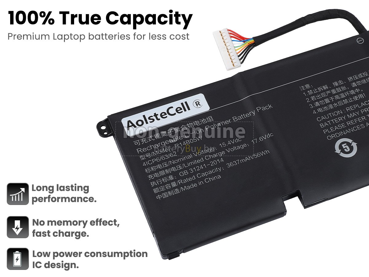 Jellemzői a mi laptop XiaoMi R14B05W akkumulátor:- Mindegyik XiaoMi R14B05W akkumulátor a kiváló minőségű, teljesen új lítium-ion akku készül, amelyeket a gyártó közvetlenül biztosítja. Alacsonyabb ár, de hosszabb élettartam.